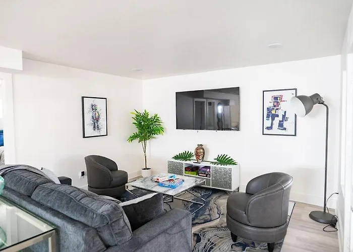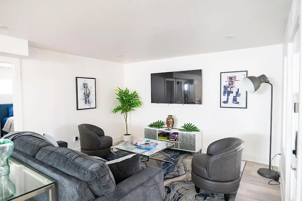 Stylish Downtown Apt - Workspace - Games - Parking includes a living room and a fully equipped kitchen with an air conditioner for utmost comfort.